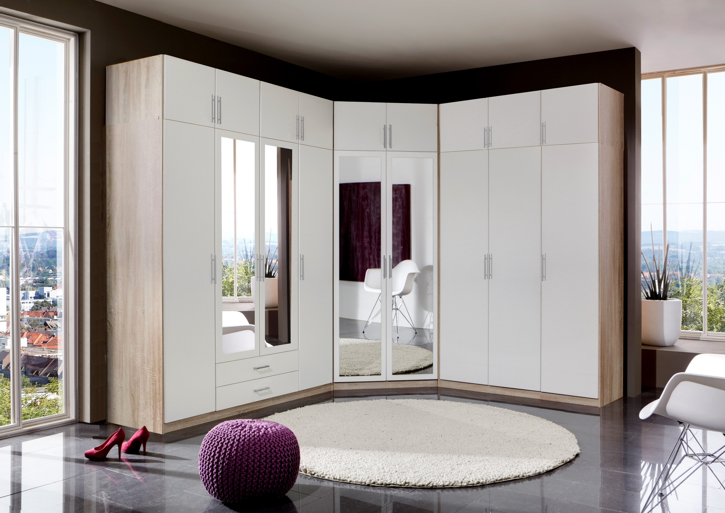 Der geschmackvolle eckkleiderschrank »barcelona« imponiert als echtes platzwunder.